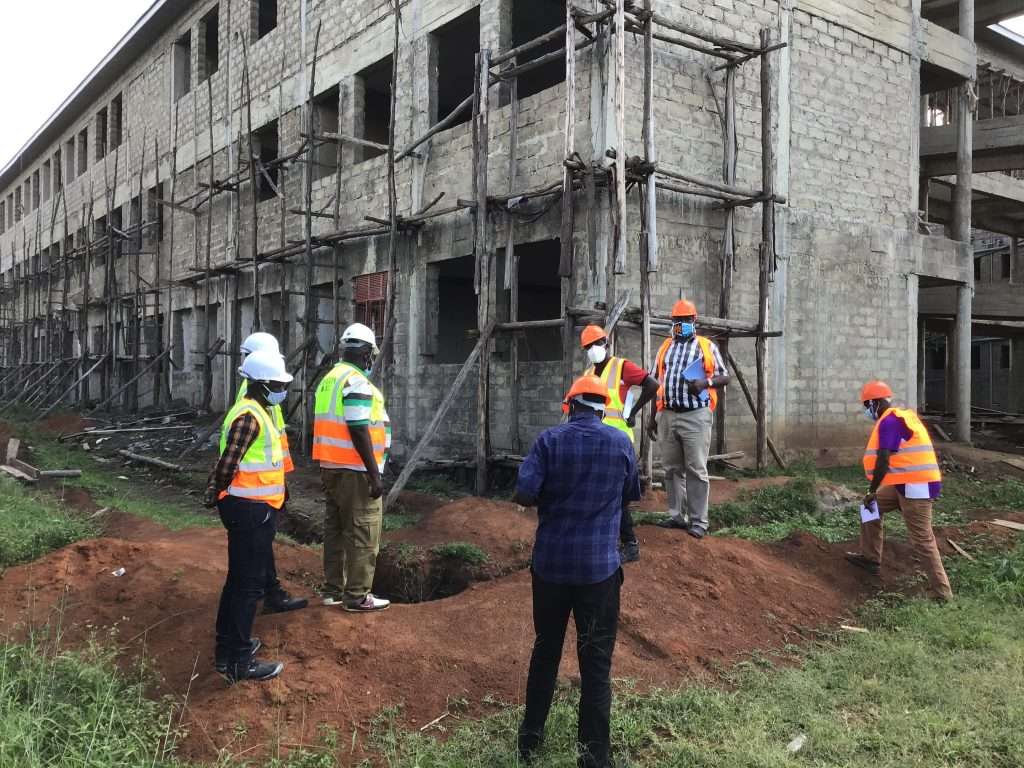 Below: University team headed by Vice Chancellor, Prof. Jasper Ogwal Okeng inspects the Education Faculty Block under construction